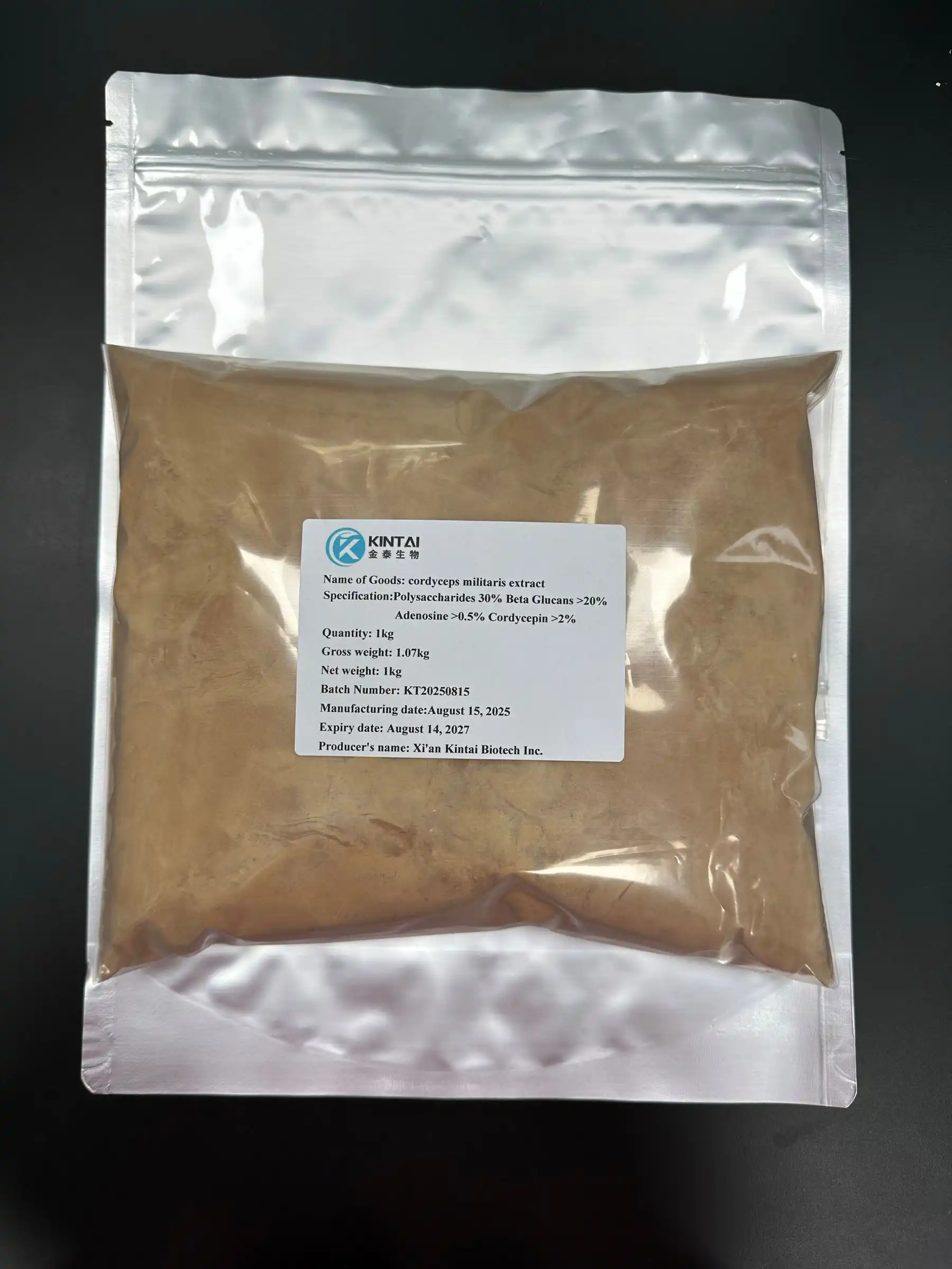 Healthkintai is a leading Chinese manufacturer and supplier of Cordyceps militaris extract. We offer a variety of specifications of Cordyceps militaris extract,Cordyceps polysaccharide 30%,50%, cordycepin 1%2%98%, and can customize it to your needs. If you require high-quality Cordyceps militaris extract, please feel free to contact us at health@kintaibio.com.